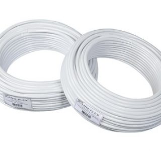 Mangueira utilizada no abastecimento de máquinas de lavar roupa.