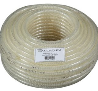 Uso geral. Mangueira resistente, em três camadas, trançada com fio de poliéster.
